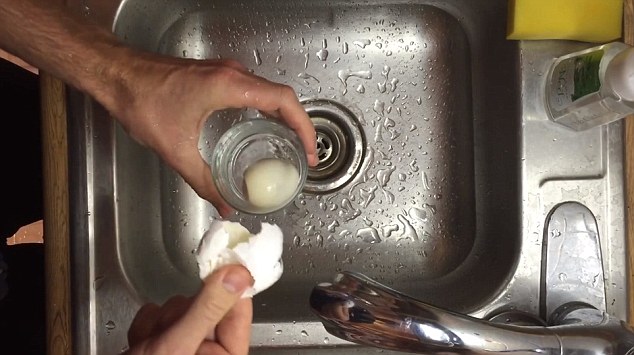 Όπως φαίνεται στο βίντεο, ο έμπειρος «σεφ» τοποθετεί το αυγό σε ένα ποτήρι με ζεστό νερό. Στη συνέχεια χρησιμοποιεί το ποτήρι σαν… σέικερ, και μετά από λίγα δευτερόλεπτα, αφαιρεί το ενιαίο τσόφλι του αυγού με μία κίνηση…