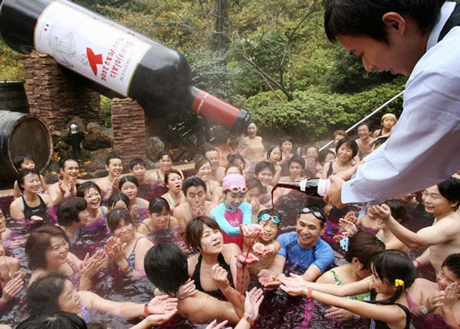 Το μπάνιο στο νερό είναι ξεπερασμένο αλλά και το spa σε ιαματικά λουτρά! Στο «Yunessun Spa Resort» στο Χακόνε της Ιαπωνίας μπορείτε να απολαύσετε μια ποικιλία spa σε κόκκινο κρασί και πράσινο τσάι στο όνομα της υγείας και της ευημερίας. Ένα μπάνιο στο κόκκινο κρασί θεωρείται ότι έχει τη δυνατότητα να αφαιρέσει τις φακίδες και τις κηλίδες της ηλικίας, ενώ το πράσινο τσάι από τα βουνά Tanzawa μπορεί να ενισχύσει το ανοσοποιητικό σύστημα. Στο «Yunessun» υπάρχουν μερικά από τα πιο παραδοσιακά ιαματικά λουτρά σε εγκαταστάσεις που κερδίζουν τις εντυπώσεις: