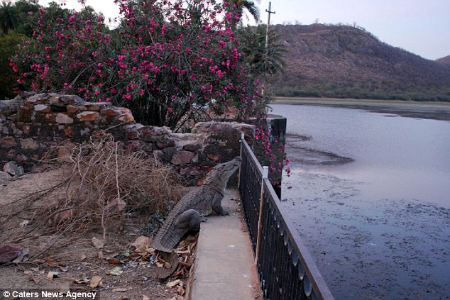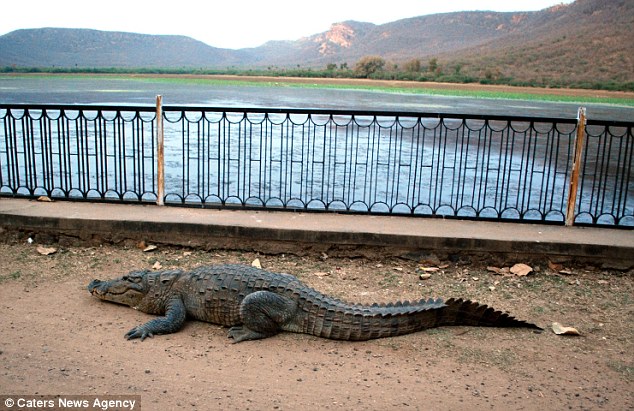 Ο φωτογράφος Ram Kishan κατάφερε να απαθανατίσει με το κινητό του τηλέφωνο τη στιγμή που ένας κροκόδειλος κατάφερε να σκαρφαλώσει έναν μεταλλικό φράχτη ύψους περίπου ενάμιση μέτρου και να βουτήξει στα νερά μιας λίμνης.