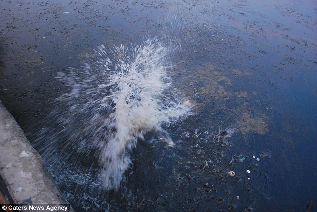 Το ερπετό, μήκους δύο μέτρων, ανέβηκε με ευκολία στο κάγκελα προτού κάνει μια εντυπωσιακή βουτιά.