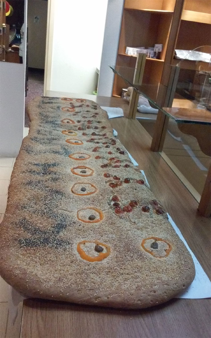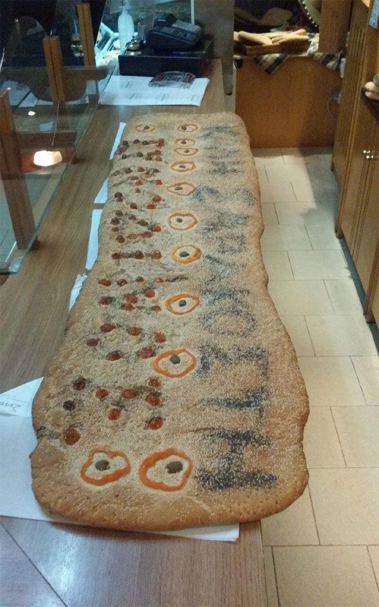 Με πολύ κέφι και όρεξη για να γιορτάσουν την Καθαρά Δευτέρα, ιδιοκτήτες φούρνου στην Καλαμαριά Θεσσαλονίκης έφτιαξαν λαγάνα τεραστίων διαστάσεων, μιμούμενοι το παράδειγμα ιδιοκτήτη καταστήματος μίνι μάρκετ στην Πρέβεζα.