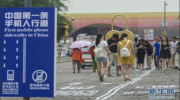 Ειδική λωρίδα σε πεζοδρόμιο για όσους είναι κολλημένοι με το κινητό τους δημιουργήθηκε στη πόλη Chongqing, μία από τις πέντε μεγαλύτερες πόλεις της Κίνας.