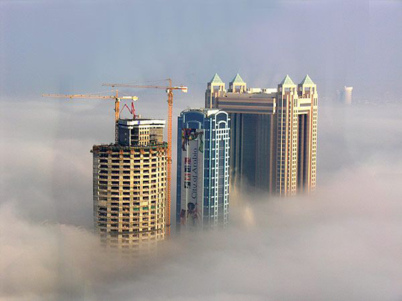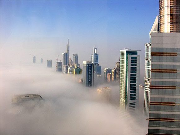 Πραγματικά εκπληκτικές εικόνες του Ντουμπάι με τους ουρανοξύστες να προεξέχουν από το επίπεδο της πυκνής ομίχλης που κάλυψε την πόλη....