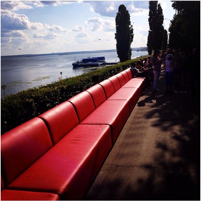 Σε ένα από τα ωραιότερα σημεία της Ρωσίας, στην πόλη Saratov, με πανέμορφη θέα και αρκετό πράσινο ολόγυρα, ο μεγαλύτερος καναπές στον κόσμο καλωσορίζει στα… μαξιλάρια του 2.500 άτομα.