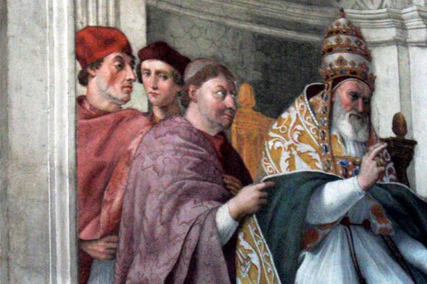 Ο συγκεκριμένος πίνακας απεικονίζει σκηνή από την αποδοχή διαταγμάτων του Βατικανού από τον τότε Πάπα Γρηγόριο τον IX κι έτσι όπως τον απαθανάτισε ο μεγάλος Ιταλός καλλιτέχνης είναι φτυστός ο Χολιγουντιανός σταρ.
