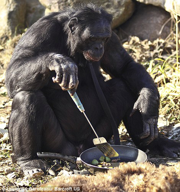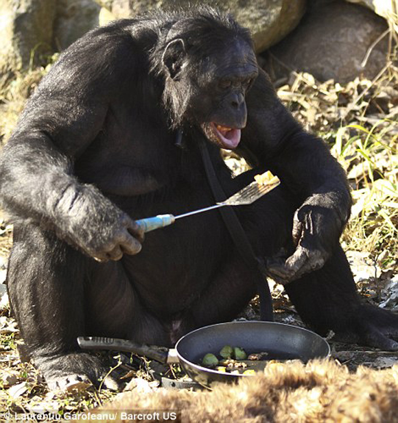 Μαζεύει ξύλα και καρπούς από το δάσος, ανάβει φωτιά, παίρνει το τηγάνι και τα λοιπά σκεύη και στρώνεται στη διαδικασία της μαγειρικής. Ο λόγος για τον χιμπατζή της φωτογραφίας ονόματι Kanzi που στα Σουαχίλι σημαίνει θησαυρός.