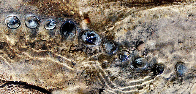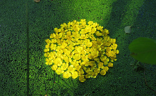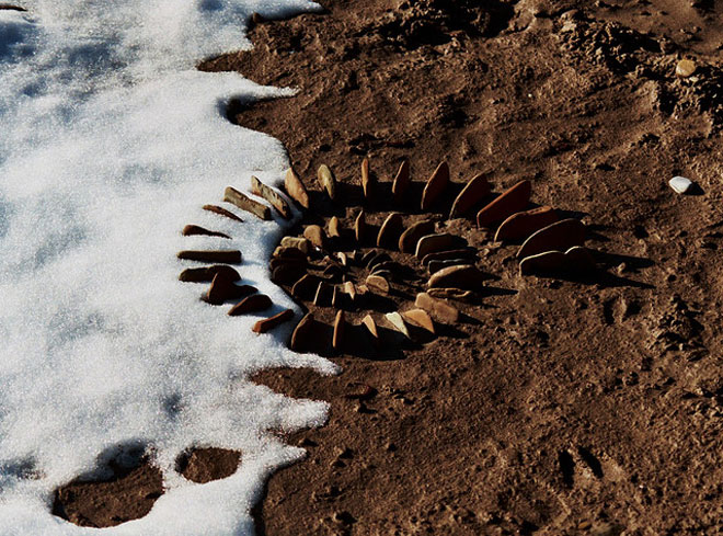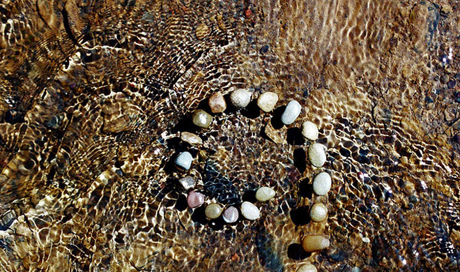 Βότσαλα δημιουργούν σχηματισμούς στο νερό, φύλλα και λουλούδια φτιάχνουν… μπουκέτα στην επιφάνεια των λιμνών, δροσοσταλίδες κάνουν ζιγκ ζαγκ στο χώμα, πέτρες χώνονται καλλιτεχνικά στην άμμο…