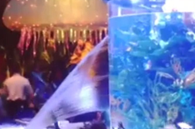 Πελάτες του «T-REX» έγιναν μούσκεμα όταν ράγισε το γυαλί του διακοσμητικού ενυδρείου και τα νερά πλημμύρισαν τα τραπέζια τους…