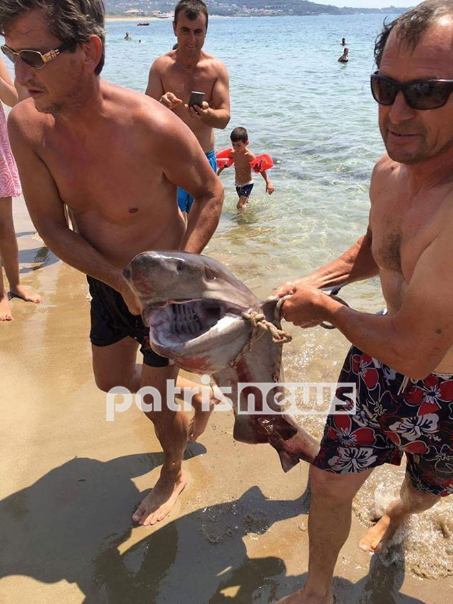 Μια ιδιαίτερα ασυνήθιστη εικόνα αντίκρισαν το πρωί της Κυριακής, οι παραθεριστές στην παραλία του Αγίου Ηλία, στον Πύργο, όταν δύο ψαράδες βγήκαν στην στεριά κρατώντας δύο μικρούς καρχαρίες.