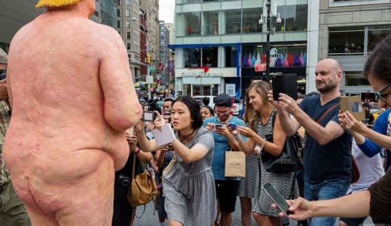 Το άγαλμα είναι ένα από τα πέντε συνολικά που έκαναν αιφνιδίως την εμφάνισή τους σε δημόσιους χώρους στη Νέα Υόρκη και άλλες τέσσερις πόλεις των ΗΠΑ, νωρίτερα τον Αύγουστο. Έχουν πορτοκαλοροζ απόχρωση και εικονίζουν τον Τραμπ με τεράστια κοιλιά, μικρά δάχτυλα και σχεδόν ανύπαρκτα γεννητικά όργανα.