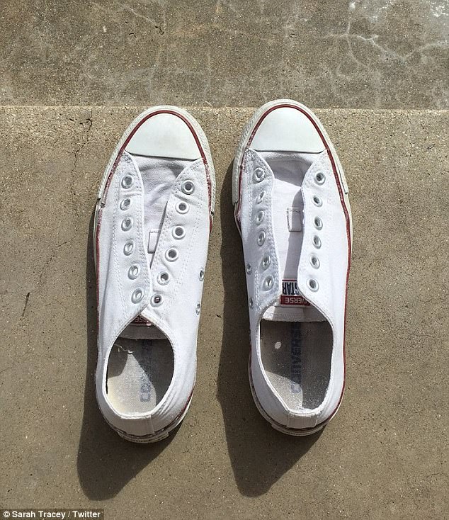 Η Sarah Tracey μοιράστηκε το μυστικό της για λευκά παπούτσια στα social media, με φωτογραφίες από το πριν και το μετά.