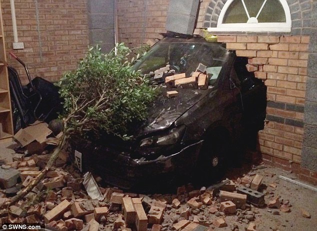 Από θαύμα σώθηκε ένας οδηγός που καρφώθηκε με το αυτοκίνητό του σε γκαραζ σπιτιού στο Brownhills, West Midlands της Βρετανίας...