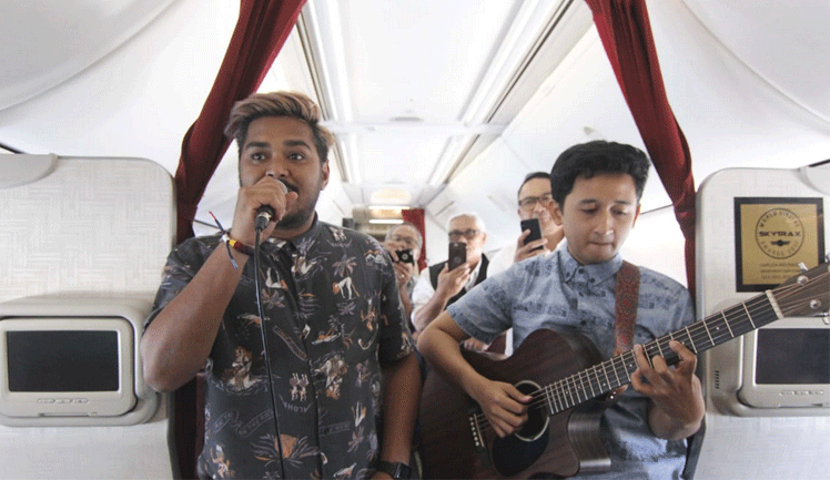 Η εταιρεία διοργάνωσε ήδη την πρώτη της «συναυλία στον αέρα» χθες, Τετάρτη με δύο μουσικούς σε πτήση της από την πρωτεύουσα Τζακάρτα προς το γνωστό τουριστικό νησί Μπαλί.