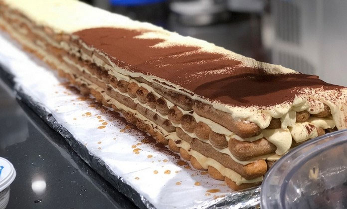 Το μήκους 273,5 μέτρων τιραμισού, διαιρούμενο σε 15.000 τεμάχια, δημιουργήθηκε στην ιταλική πόλη και κατέρριψε το προηγούμενο ρεκόρ Γκίνες (μήκους 266 μέτρων).