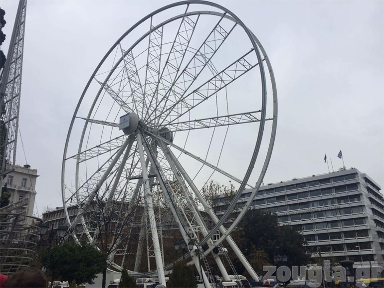 Η ρόδα στο Σύνταγμα στήθηκε με σκοπό να δώσει μια άκρως χριστουγεννιάτικη νότα σε μια πόλη που δοκιμάζεται από την οικονομική ένδεια, την ανεργία και τη φοροκαταιγίδα.