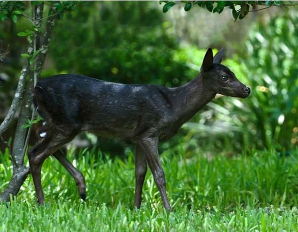 Γνωστό με την επιστημονική ονομασία «melanistic deer», το συγκεκριμένο είδος ελαφιού παρουσιάζει μια ασυνήθιστη γενετική παραλλαγή στο χρώμα. Ειδικότερα, ο οργανισμός του παράγει μεγάλα ποσοστά μελανίνης, χρωματίζοντας το τρίχωμα του ζώου μαύρο, μετάλλαξη η οποία μπορεί να παρουσιαστεί και σε άλλα ζώα, όπως, για παράδειγμα, στα λιοντάρια.