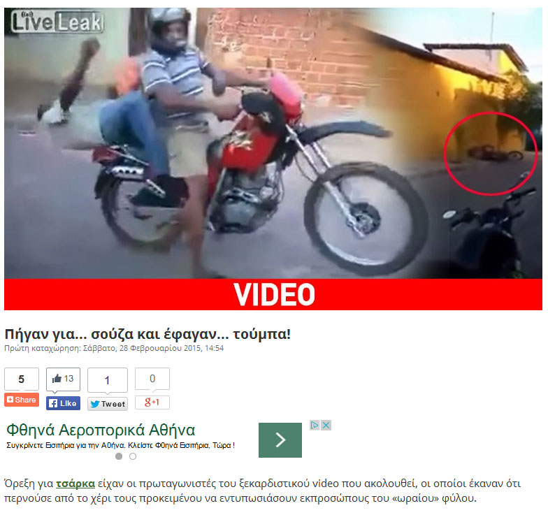 Τον γύρο του Διαδικτύου κάνει τις τελευταίες ώρες ερασιτεχνικό video που καταγράφει τις τελευταίες κινήσεις ενός οδηγού μοτοσικλετιστή, πριν πέσει πάνω σε διαφημιστική πινακίδα.