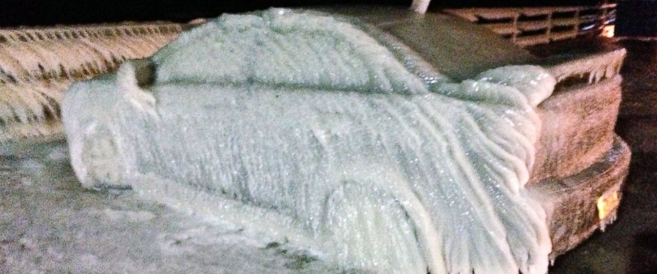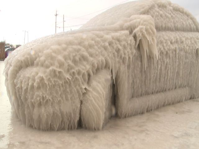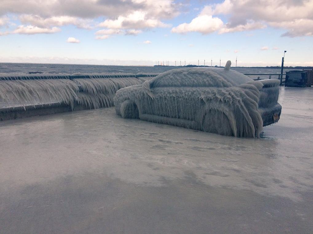 Οι παγωμένοι άνεμοι, οι πολύ χαμηλές θερμοκρασίες και το νερό της λίμνης μετέτρεψαν το όχημα σε… γλυπτό από πάγο, με τον 24χρονο ιδιοκτήτη του, Τζάστιν Γέλεν, να παρακαλάει από τώρα να έρθει το καλοκαίρι για να αποκαλυφθεί και πάλι αυτοκίνητό του.