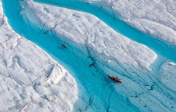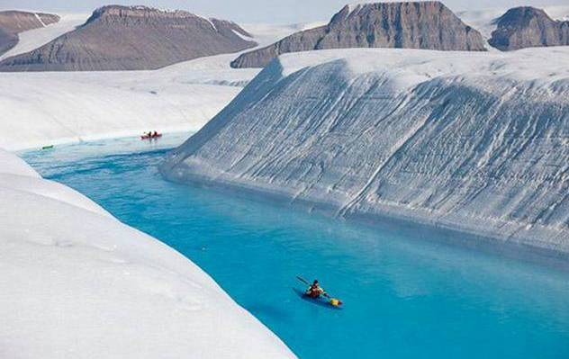 Ρέoντας προς τη θάλασσα το νερό του παγετώνα σχηματίζει αυτό το απίστευτο γαλάζιο ποτάμι που βλέπετε στις φωτογραφίες.