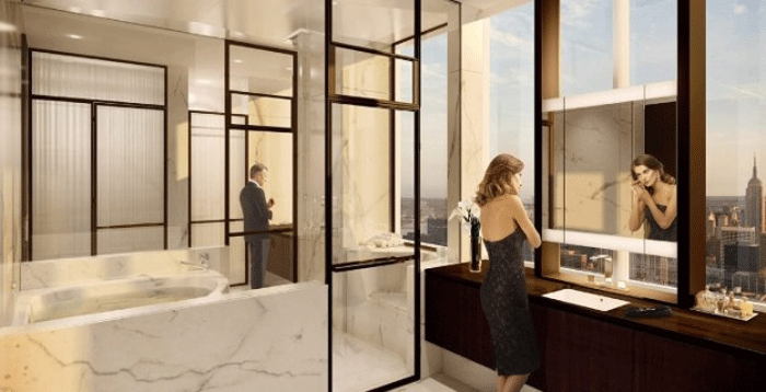 Τα επτά μπάνια του είναι όλα φτιαγμένα από μάρμαρο και σε κάθε δωμάτιο του ρετιρέ υπάρχουν γυάλινοι τοίχοι που επιτρέπουν στον ιδιοκτήτη να απολαμβάνει απρόσκοπτα τη θέα της πόλης.