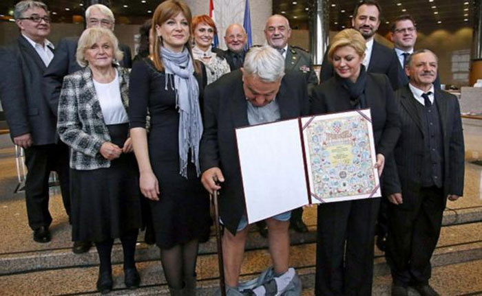 Μία άτυχη στιγμή είχε ο επικεφαλής της οργάνωσης για τα ανθρώπινα δικαιώματα στην Κροατία, Ιβάν Ζβόνιμιρ Τσίσακ, κατά τη διάρκεια βράβευσης του από την Πρόεδρο της χώρας, Κολίντα Γκράμπαρ Κιτάροβιτς.