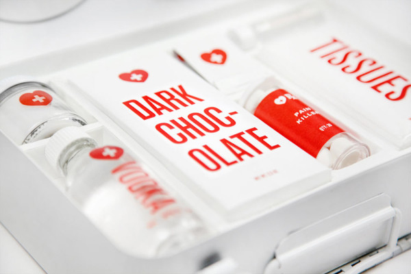 Η σχεδιάστρια Melanie Chernock σκέφτηκε πως βαλιτσάκι πρώτων βοηθειών χρειαζόμαστε όχι μόνο για τα χτυπήματα στη σάρκα μας, αλλά και για τα τραύματα στην ψυχή, που προκαλούνται – από τι άλλο; – από έναν χωρισμό.
