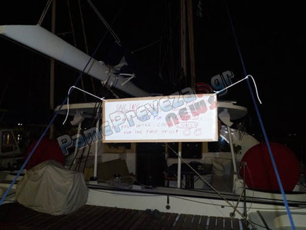 Μια πινακίδα σε σκάφος στην παραλία της Πρέβεζας κεντρίζει το ενδιαφέρον των περαστικών. Στην πινακίδα οι ιδιοκτήτες του σκάφους προσφέρουν...
