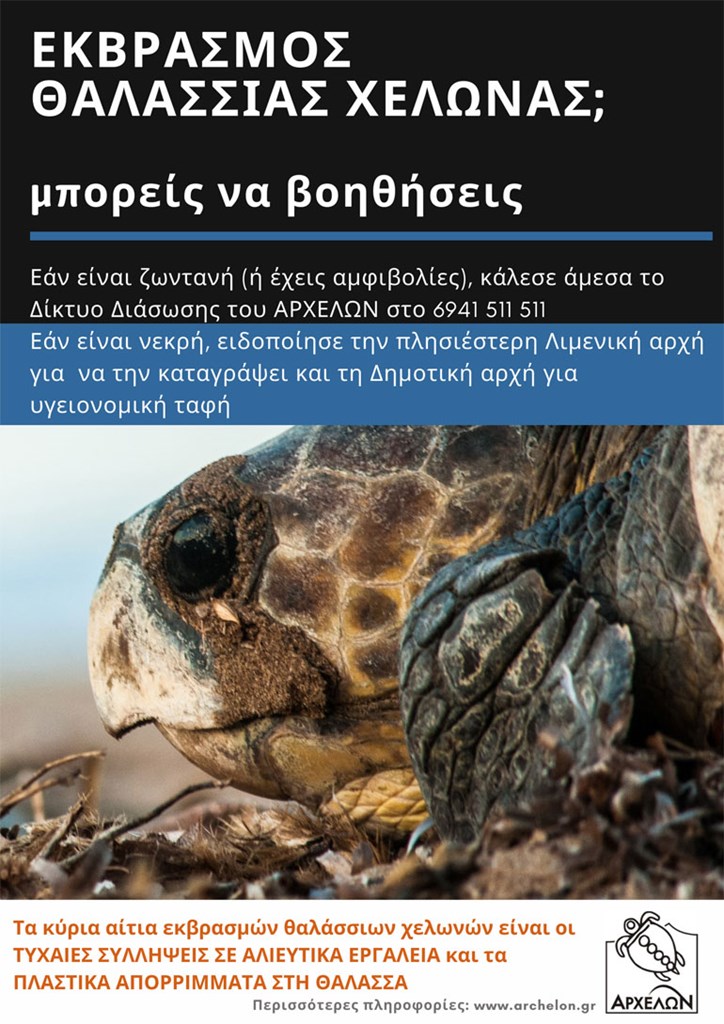 Για πρώτη χρονιά από το 1992, που ιδρύθηκε από τον «ΑΡΧΕΛΩΝ» το Εθνικό Δίκτυο Διάσωσης θαλάσσιων χελωνών, οι αναφορές των εκβρασμών νεκρών χελωνών ξεπέρασαν τις 700. Τα προηγούμενα χρόνια οι αναφορές κυμαίνονταν από 500-600 ανά έτος. Οι ερευνητές/εθελοντές που υποστηρίζουν το Δίκτυο Διάσωσης εξετάζουν συστηματικά κάθε περίπτωση εκβρασμού, με σκοπό την καλύτερη οργάνωση του Δικτύου και την αξιολόγηση των απειλών που αντιμετωπίζουν οι θαλάσσιες χελώνες ανά περιοχή.