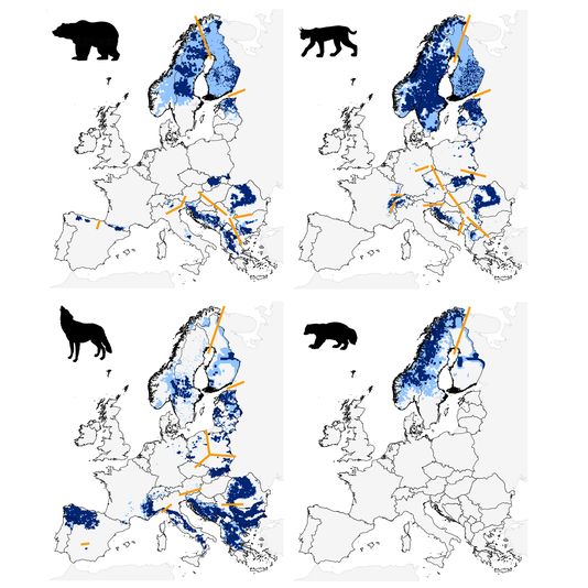 Με εξαίρεση το Βέλγιο, τη Δανία, το Λουξεμβούργο και την Ολλανδία, σχεδόν όλες οι υπόλοιπες ευρωπαϊκές χώρες φιλοξενούν πληθυσμούς ενός από τα είδη της καφέ αρκούδας (Ursus arctos), του ευρασιατικού λύγκα (Lynx lynx), γκρίζου λύκου (Canis lupus) και του αδηφάγου (Gulo gulo).