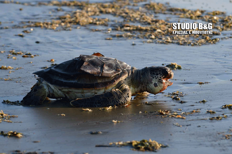 Το κουφάρι μια ακόμα θαλάσσιας χελώνας Καρέτα καρέτα ξεβράστηκε από την θάλασσα στην περιοχή του υδροβιότοπου Ναυπλίου Νέας Κίου.