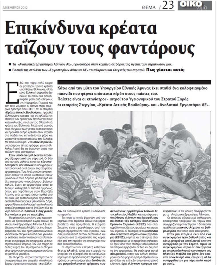 4. Μετά την καταγγελία του ΠΑΚΟΕ για την αναξιοπιστία (συννημένο 1) των Αναλυτικών Εργαστηρίων που παρά τα πανομοιότυπα σ’ όλα τα δείγματά τους αποτελέσματα ,αποδέχεται την ύπαρξη εξασθενές