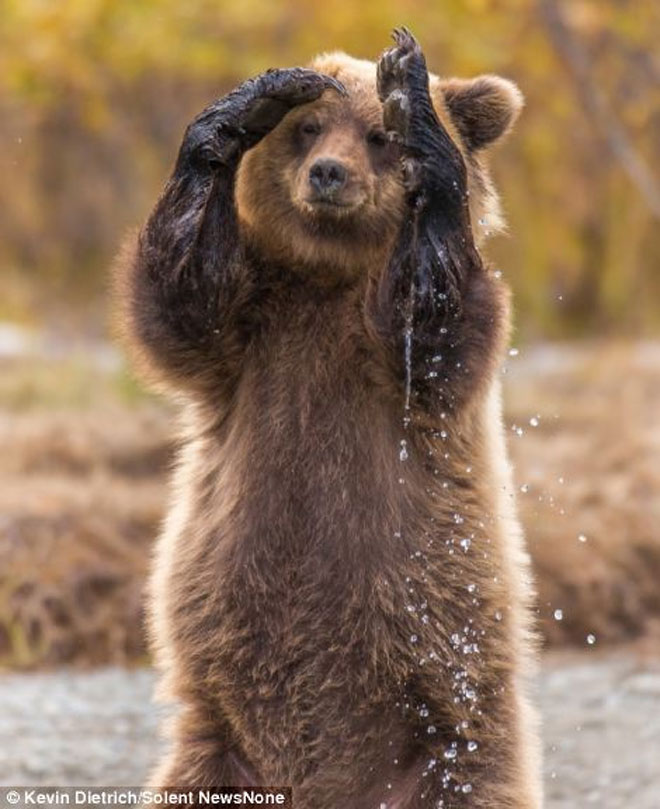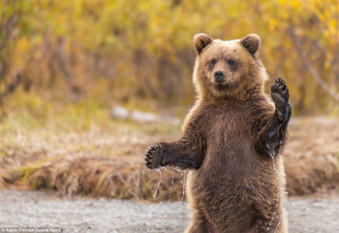 Μία γλυκύτατη φωτογραφία με μία αρκούδα να «χαιρετά» τον φωτογραφικό φακό τράβηξε ο Kevin Dietrich στην Αλάσκα.