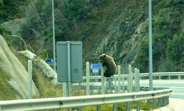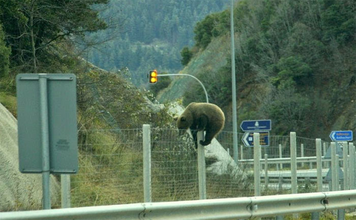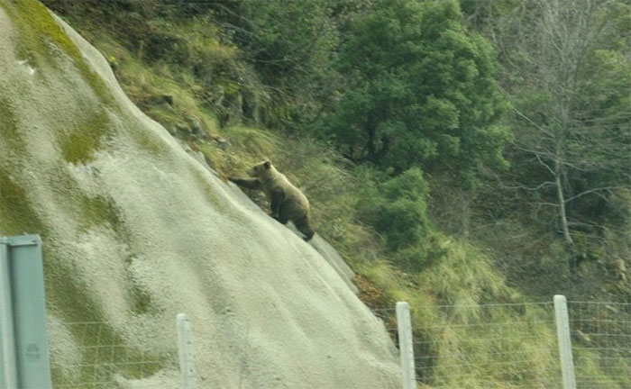 Ο αρκούδος κατάφερε να… ξεπεράσει με μια δρασκελιά τα εμπόδια που τον χώριζαν από το φυσικό του περιβάλλον, δηλαδή το δάσος.
