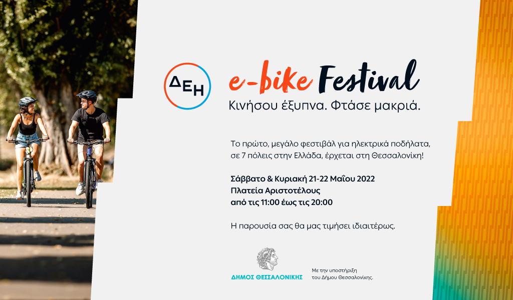 Η πόλη της Θεσσαλονίκης είναι ο επόμενος σταθμός του ΔΕΗ e-bike Festival, του πρώτου, μεγάλου φεστιβάλ αφιερωμένου στα ηλεκτρικά ποδήλατα στην Ελλάδα.