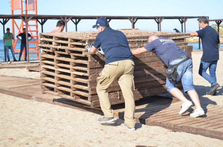 Πετύχαμε να καθαριστεί η πλαζ και να στρωθεί με παλέτες ο υπόλοιπος χώρος της, προκειμένου να εξασφαλιστεί η ανεμπόδιστη πρόσβαση των παιδιών, ιδιαίτερα αυτών που κινούνται με αναπηρικά αμαξίδια στην έκταση της παραλίας και προς τη θάλασσα.