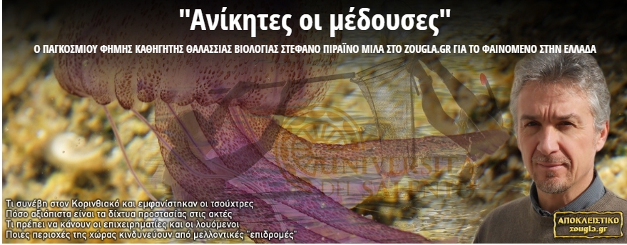 Μετά τη συνέντευξη στο zougla.gr του Ιταλού καθηγητή θαλάσσιας βιολογίας, Στέφανο Πιραΐνο, ο οποίος επισκέφθηκε πρόσφατα την Ελλάδα για να συμμετάσχει σε συνέδριο στο Λουτράκι που αφορούσε στην εμφάνιση μεδουσών στις ελληνικές ακτές, η ηλεκτρονική μας εφημερίδα, συνεχίζει να ερευνά το φαινόμενο φιλοξενώντας τις απόψεις διακεκριμένων επιστημόνων. Είναι γεγονός πως η επιδρομή των μεδουσών στις ελληνικές ακτές αφορά χιλιάδες πολίτες αλλά και πολλούς επιχειρηματίες εν’ όψει της καλοκαιρινής περιόδου. Το φαινόμενο όμως αφορά και την ελληνική Πολιτεία, η οποία προετοιμάζεται για να αντιμετωπίσει αυτές τις προκλήσεις. Η πρόσφατη δημοσιοποίηση της είδησης πως στην Ελλάδα δεν έχει γίνει καμία μελέτη για τις τσούχτρες, δημιουργεί σοβαρό προβληματισμό για το αν τελικά έχουμε πάρει στα σοβαρά το πρόβλημα ή απλά θα μείνουμε για ακόμα μια φορά παρατηρητές.
