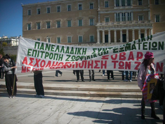Το μεσημέρι του Σαββάτου στο κέντρο της Αθήνας, έξω από τη Βουλή και στη συνέχεια έξω από το Δημαρχείο οι φιλόζωοι της πρωτεύουσας – κατά πλειοψηφία γυναίκες – συγκεντρώθηκαν για να διαμαρτυρηθούν με αφορμή τη δολοφονία δεκάδων σκυλιών, γατιών και περιστεριών την περασμένη Τετάρτη στο Ζάππειο και τον Εθνικό Κήπο.