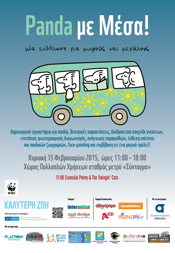 Οδηγοί σε αυτήν την ενδιαφέρουσα «διαδρομή» είναι οι Συγκοινωνίες Αθηνών και το πρόγραμμα «WWF-Καλύτερη Ζωή», αποκλειστικός δωρητής του οποίου είναι το Ίδρυμα Σταύρος Νιάρχος. Στις 15 Φεβρουαρίου, από τις 11:00 το πρωί μέχρι και 18:00 το απόγευμα, οι επισκέπτες θα ανακαλύψουν τα οφέλη των μέσων αστικών συγκοινωνιών στη ζωή τους και το περιβάλλον, στο πλαίσιο της καμπάνιας «Panda με Μέσα».