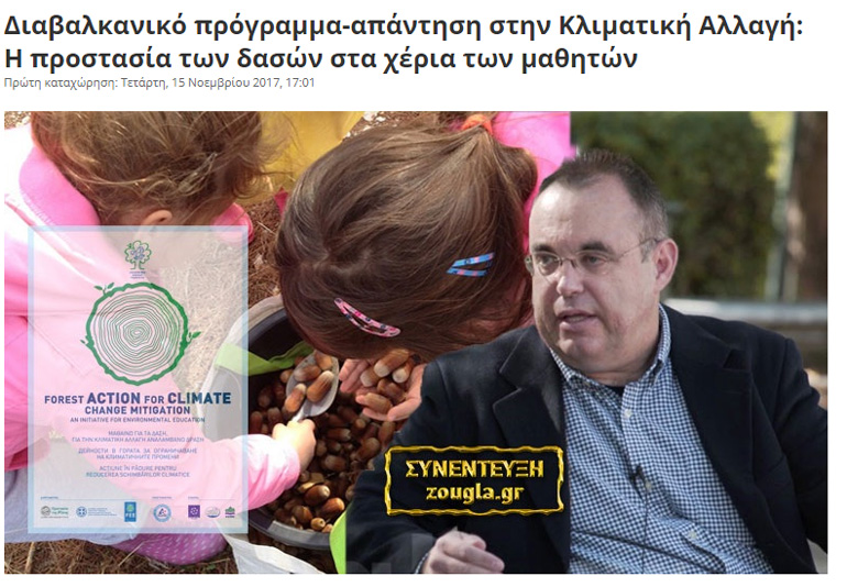 Η Ελληνική Εταιρία Προστασίας της Φύσης στο πλαίσιο του δικτύου «Μαθαίνω για τα Δάση» διοργανώνει και συντονίζει – με την υποστήριξη της Tetra Pak – τη διαβαλκανική δράση: «Μαθαίνω για τα Δάση, για την Κλιματική Αλλαγή Αναλαμβάνω Δράση» (“Forest Action for Climate Change mitigation”).