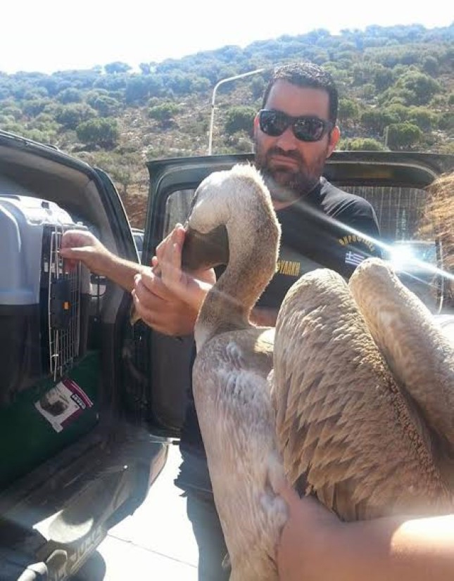Εξαντλημένος ροδοπελεκάνος βρήκε καταφύγιο στην Ιεράπετρα