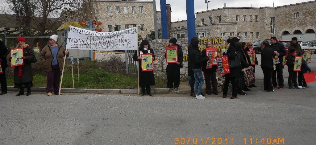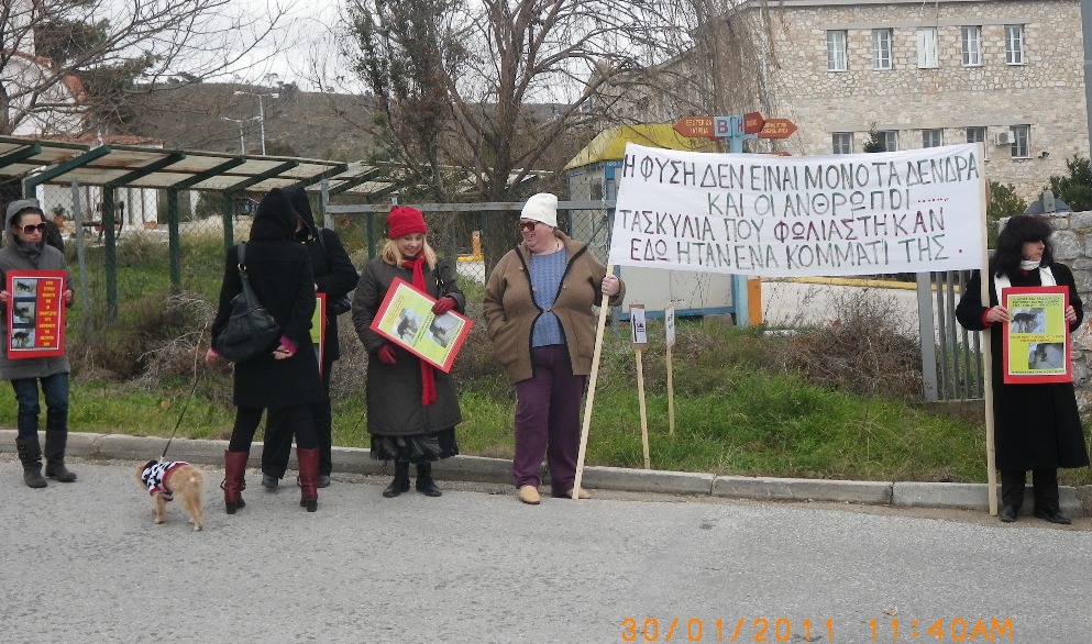 17 ΑΤΟΜΑ ήμασταν όλοι κι όλοι. Μετά από τόση κινητοποίηση, από τόσα μηνύματα αγανάκτησης, που κατέκλυσαν το διαδίκτυο. 17 ΑΤΟΜΑ στέκονταν μέσα στη παγωνιά, γραφικές φιγούρες, που αυτή η ίδια η εικόνα τους, διαδήλωνε και πιστοποιούσε την ΑΝΥΠΑΡΞΙΑ ουσιαστικής φιλοζωικής συνείδησης και υπευθυνότητας.