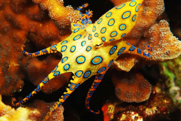 Παρόλο που η εντυπωσιακή εμφάνισή του παραπλανά τα «θύματά» του, το Blue-Ringed Octopus της οικογένειας των Hapalochlaena αποτελεί ένα από τα πιο επικίνδυνα θαλάσσια είδη στον κόσμο.