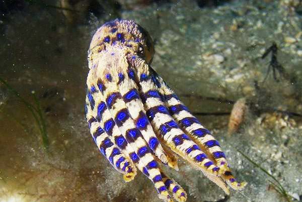 Το συγκεκριμένο χταπόδι ζει στους καοραλλιογενείς υφάλους του Ειρηνικού και Ινδικού ωκεανού και μεταφέρει αρκετό δηλητήριο (τετροδοτοξίνη) στα πλοκάμια του, ικανό να σκοτώσει μέχρι και 26 ανθρώπους μέσα σε μερικά λεπτά! Αξίζει να σημειώσουμε ότι το δηλητήριο που διαθέτει παραλύει το αναπνευστικό σύστημα, ενώ αντίδοτο δεν υπάρχει.