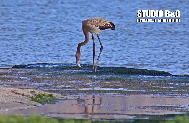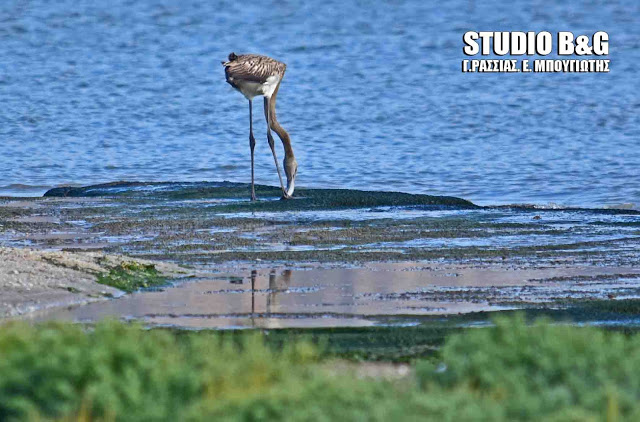 Το νεαρό φλαμίνγκο έμεινε στον υδροβιότοπο της Αργολίδος ακολουθώντας σμήνος πουλιών που πέρασε από την περιοχή, λόγω της τρέχουσας μεταναστευτικής περιόδου.
