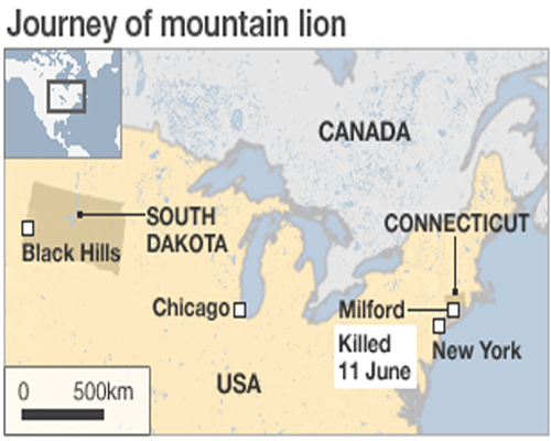 Δεν πίστευαν στα μάτια τους επιστήμονες που εξέτασαν ένα πούμα, το οποίο είχε χτυπηθεί θανάσιμα τον περασμένο Ιούνιο από αυτοκίνητο σε δρόμο της Πολιτείας Κονέκτικατ των Η.Π.Α., διαπιστώνοντας ότι είχε διανύσει απόσταση σχεδόν 3.000 χλμ..