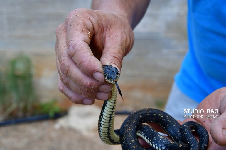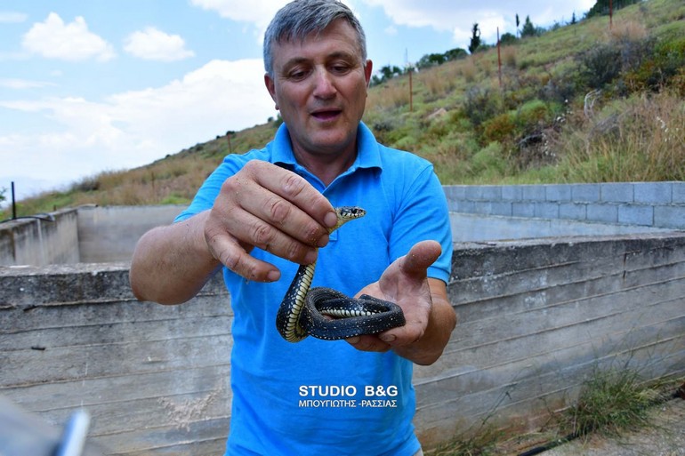 Δύο νερόφιδα απεγκλωβίστηκαν μέσα από μία τσιμεντένια δεξαμενή νερού, μετά από επιχείρηση που έκανε ο αγρότης Άρης Τσιρίκος σε τοποθεσία στο χωρίο Λευκάκια του Δήμου Ναυπλιέων στην Αργολίδα το Σάββατο 22 Ιουνίου 2019.