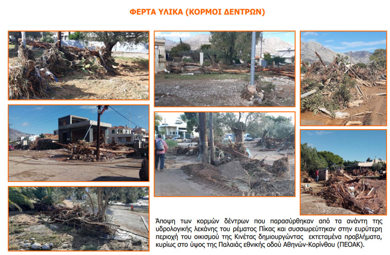 2. Τα φερτά που έπαιξαν τον σημαντικότερο ρόλο εκτιμάται ότι είναι κατά κύριο λόγο καμένα δέντρα που εκχερσώθηκαν κατά τη διάρκεια της καταιγίδας λόγω και της κίνησης εδαφικών μαζών (κατολισθήσεων κ.λπ.), μαζί με τα κλαδιά και το ριζικό τους σύστημα.
