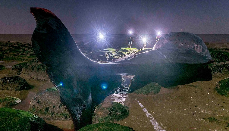 Το θηλαστικό που ζυγίζει 30 τόνους βρέθηκε νεκρό την Παρασκευή. Η φάλαινα εξόκειλε στην ακτή μαζί με μία ακόμη, η οποία ωστόσο κατάφερε να επιστρέψει στη θάλασσα.