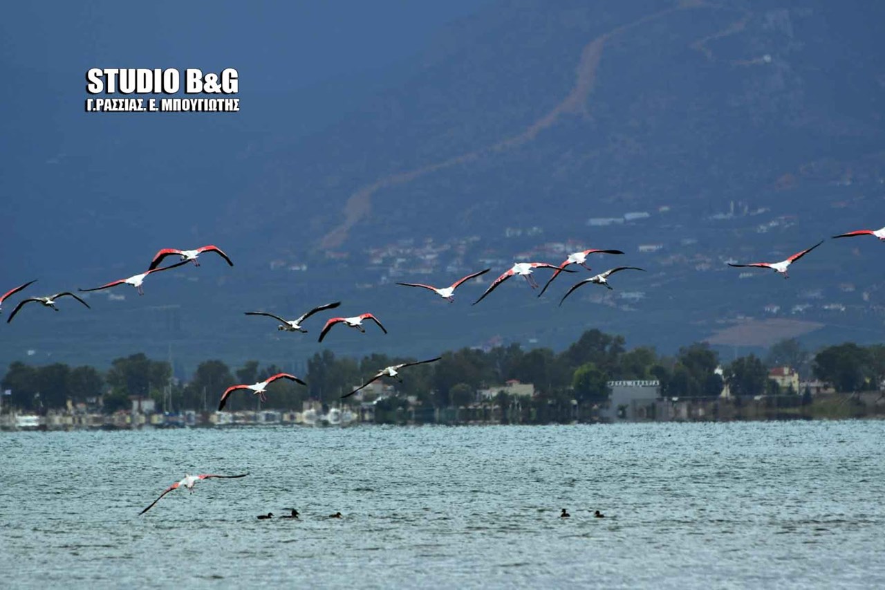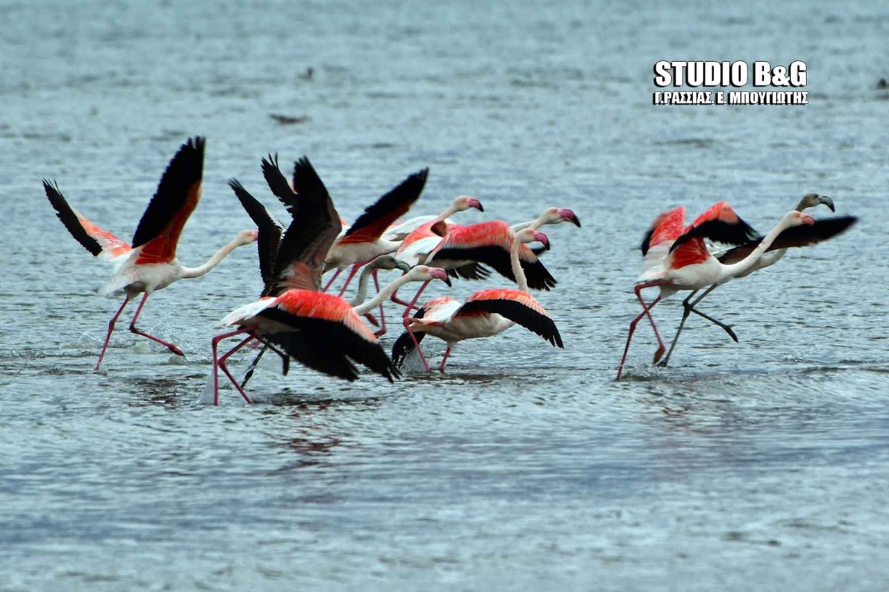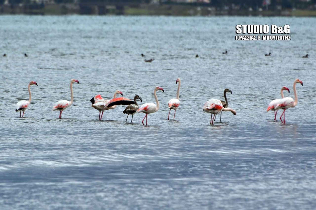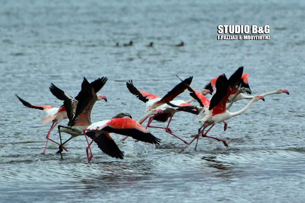 Περίπου 30 φλαμίνγκο βρήκαν το πρωί της Πέμπτης καταφύγιο από το σφοδρό κύμα κακοκαιρίας στον υδροβιότοπο Ναυπλίου – Νέας Κίου.