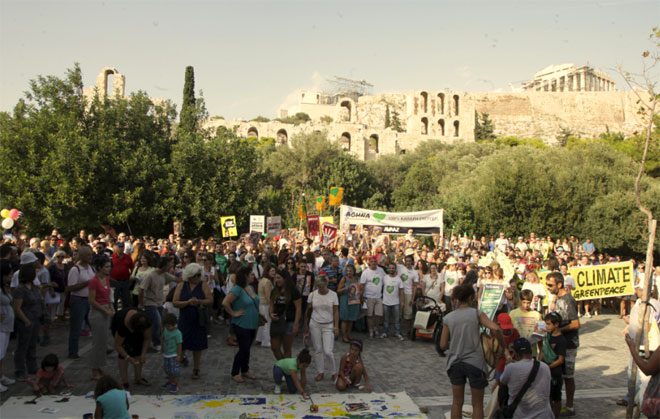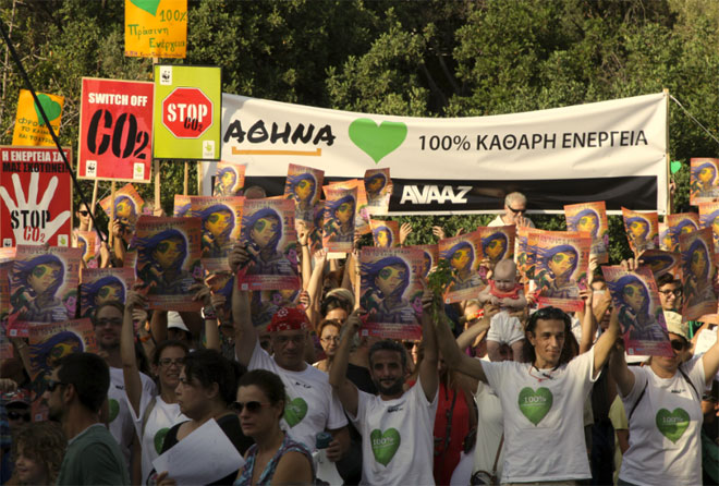 Η Αθήνα έδωσε το δικό της στίγμα στην παγκόσμια ημέρα δράσης με το μήνυμα: Η μόνη λύση για τη σωτηρία του πλανήτη είναι η μετάβαση σε 100% καθαρή ενέργεια.